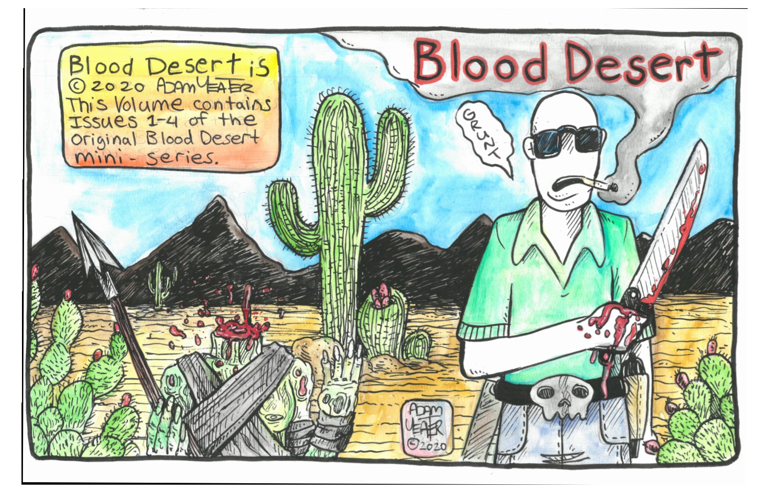 This 156 page megazine sized trade paperback compiles the first 4 issues of the Blood Desert comic book series. The books are all professionally printed with color covers and black white interiors.