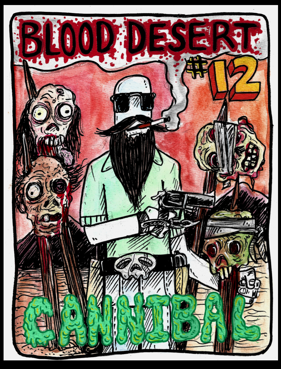 In Blood Desert #12 The tale of the Stoner Pig continues and the Cannibals return in this action packed 48 page Magazine sized horror comic book!
