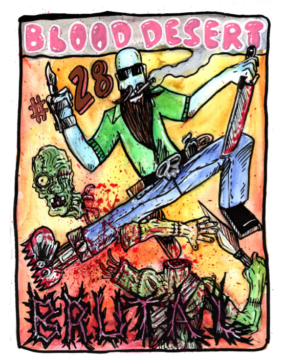 Blood Desert- Brutal is filled with stories of mutant pigs and rotting lepers. It is also 48 pages of black and white entertainment.